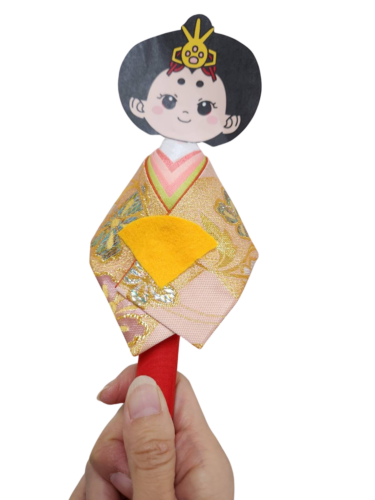 ワークショップでは、雛人形の製作のひとつ「衿巻き体験(簡略版)」をして可愛らしいおひなさまを作ります。